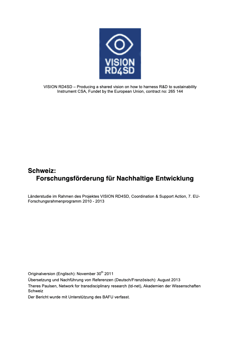 VISION RD4SD, Country Case Study Switzerland