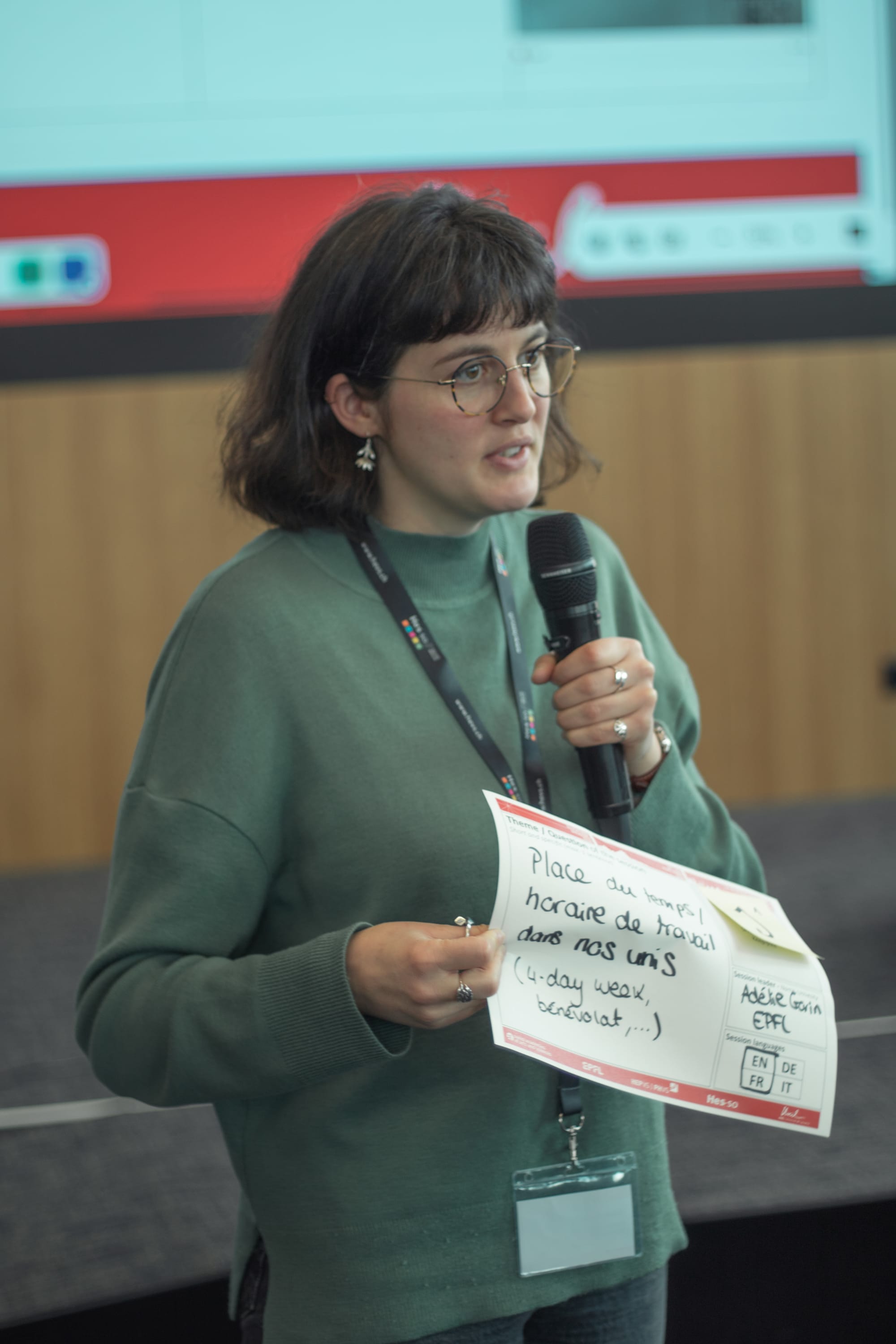 Il discorso introduttivo dei-lle rappresentanti delle istituzioni organizzatrici ha gettato le basi del dibattito. Gaëtan Cherix, direttore della Scuola di Ingegneria HES-SO Valais-Wallis, ha posto la domanda: «quale professione non sarà trasformata dalle sfide della sostenibilità?». Mentre Peter Summermatter, vicedirettore dell'HEP Valais, sottolinea la necessità di integrare la sostenibilità nella formazione degli-lle insegnanti, Marianne Bonvin, direttrice esecutiva delle Accademie svizzere delle scienze (a+), incoraggia le competenze inter- e trans-disciplinari nella scienza e l'impegno studentesco come leva per trasformare le scuole universitarie superiori. Cita il programma U Change come esempio di quest'ultimo. Benoît Frund, Vice-Rettore «transition et le campus» dell'Università di Losanna, ritiene che «se le università uscissero dalla loro posizione di superiorità e facessero loro stesse ciò che sostengono da anni, forse riusciremmo a far muovere le cose!». Gisou van der Goot, vicepresidente «transformation responsable» all'EPFL, pone la questione della necessità di una task force politica per il clima e la biodiversità. Infine, Dominique Bollinger, coordinatore della sostenibilità presso l'HES-SO, sottolinea la necessità di lavorare insieme per una forte sostenibilità in tutte le attività delle scuole universitarie, di dare le chiavi alle nuove generazioni e di fare appello alla forza dell'intelligenza collettiva. Transizione ideale verso il seguito del programma: l'Open Space!